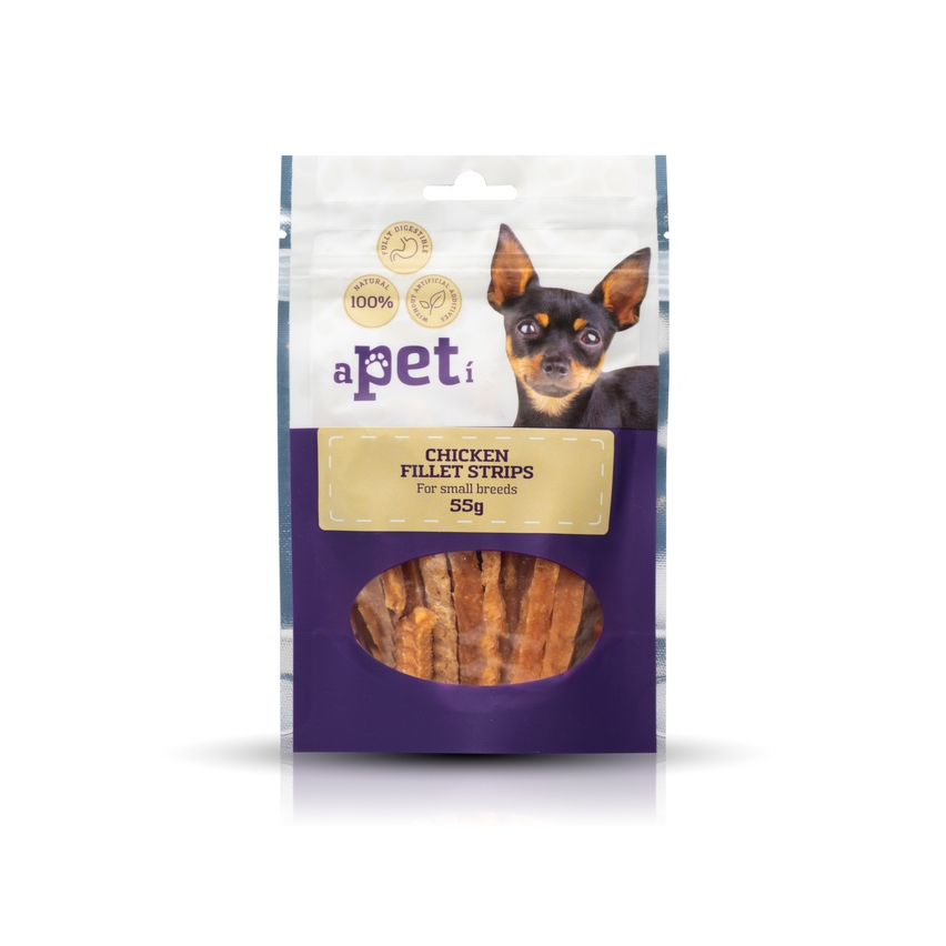 Aeglaselt ahjust küpsetatud puhtast kanafileest ribad. Neid on lihtne väiksemateks tükkideks murda ja treenimisel preemiaks anda.