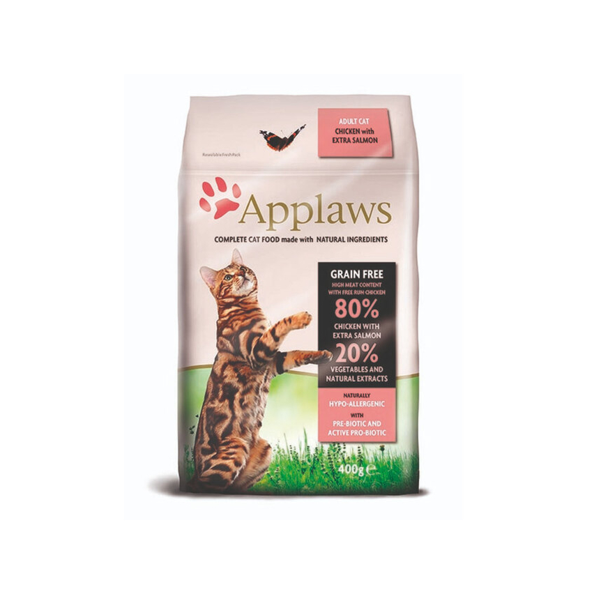 Applaws kuivtoit kana ja lõhega ning naturaalsete ekstraktidega täiskasvanud kassidele. Applaws kuivtoit on hüpoallergeenne ning ei sisalda allergeene nagu sojaoad, nisu, mais ning teised teraviljad. Sisaldab aktiivset probiootikumi.