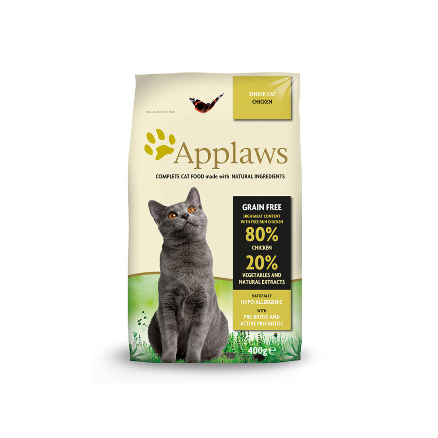 Applaws kuivtoit kana ja naturaalsete ekstraktidega vanematele kassidele (alates 7. eluaastast). Sisaldab kookosõli ja aktiivset probiootikumi. Sobilik ka steriliseeritud/kastreeritud kassidele. Applaws kuivtoit on hüpoallergeenne ning ei sisalda allergeene nagu sojaoad, nisu, mais ning teised teraviljad.