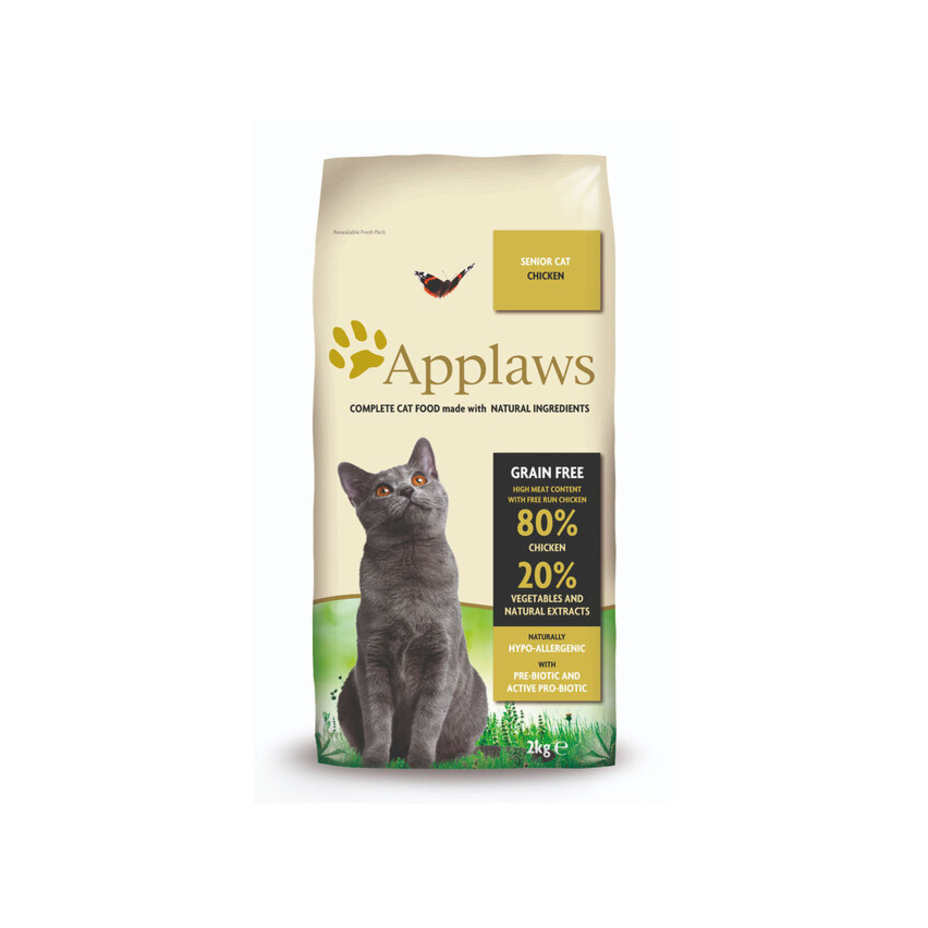 Applaws kuivtoit kanaliha ja naturaalsete ekstraktidega vanematele kassidele (alates 7. eluaastast). Sisaldab kookosõli ja aktiivset probiootikumi. Sobilik ka steriliseeritud/kastreeritud kassidele. Applaws kuivtoit on hüpoallergeenne ning ei sisalda allergeene nagu sojaoad, nisu, mais ning teised teraviljad.
