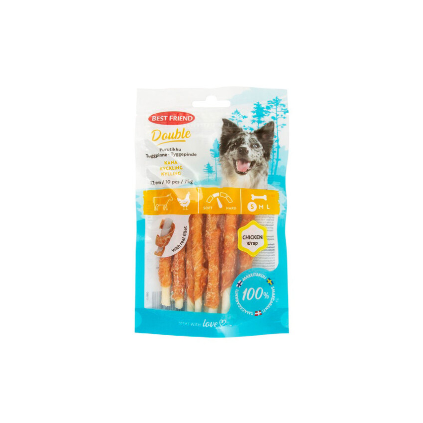 Best Friend Double närimispulgad veisenahast kanafileega. Double närimispulgad on kergesti seeditavad, valgurikkad ja madala rasvasisaldusega. Närimistoodete regulaarne kasutamine aitab säilitada hammaste ja igemete tervist ning vältida halba hingeõhku. Närimistooted pakuvad ka suurepärast meelelahutust ja turgutavad tõhusalt teie koera igavatel hetkedel, stimuleerides samal ajal loomulikku närimisinstinkti.
