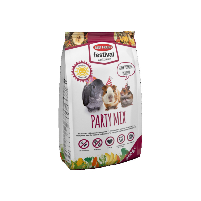 Best Friend Festival Exclusive Party Mix täissööt närilistele, mis katab nende igapäevase toitumisvajaduse, sisaldades rikkalikult köögivilju, olulisi vitamiine, mineraalaineid ja asendamatuid aminohappeid.