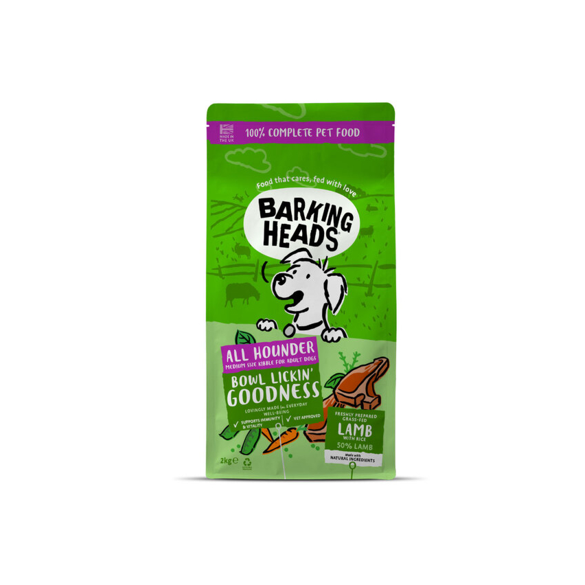 Barking Heads koera täissööt All Hounder Bowl Lickin Goodness lambalihaga. Täissööt täiskasvanud koertele.