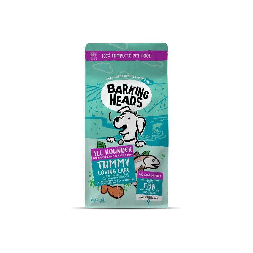 Barking Heads koera täissööt All Hounder Tummy Lovin Care kalaga. Täissööt täiskasvanud koertele.