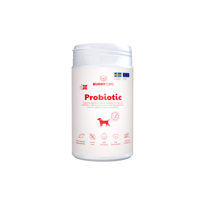 Buddy Care närimismaius Probotic. Täiendsööt koertele. Looduslik toidulisand, mis toetab koera tervet seedimist ja immuunsüsteemi normaalset talitlust.