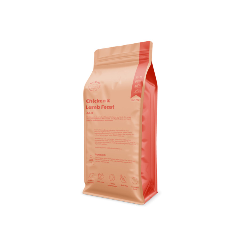 Buddy kuivtoit koertele kanaliha ja lambalihaga. Täissööt täiskasvanud koertele normaalse aktiivsuse tasemega. Suur lihasisaldus koos vitamiinirikka köögiviljade ja supertoitude seguga annab sinu koerale vajalikud valgud ja toitained.