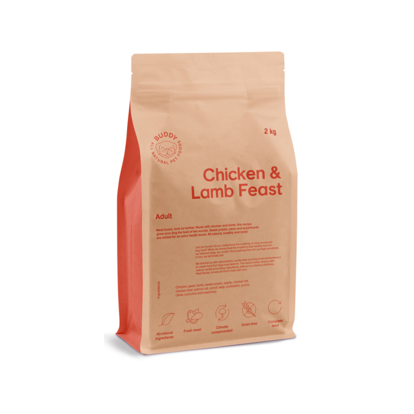 Buddy kuivtoit koertele kanaliha ja lambalihaga. Täissööt täiskasvanud koertele normaalse aktiivsuse tasemega. Suur lihasisaldus koos vitamiinirikka köögiviljade ja supertoitude seguga annab sinu koerale vajalikud valgud ja toitained.