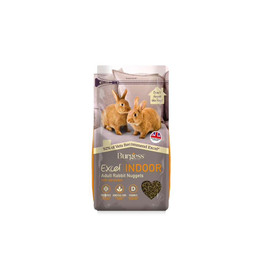Excel Indoor täissööt on sobilik kõikidele täiskasvanud küülikutele (alates 4. elukuust). Sisaldab D-vitamiini, võilille ja kõrvenõgest. Lisaväärtust maitse rikastamiseks annab võilill. Sisaldab ka prebiootikume, mis mõjuvad soodsalt immuunsüsteemile ja seedeelundkonna bakteritele. Vitamiin D toetab naha, hammaste ja luude tervist