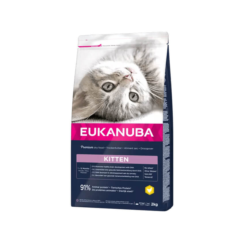 Eukanuba kuivtoit kasvavatele kassipoegadele on 100% täisväärtuslik ja tasakaalustatud. See maitsev koostis sisaldab rikkalikult värsket kana ja toidu kogu valgusisaldusest moodustavad 91% loomsed valgud, mis aitavad ehitada ning säilitada tugevaid lihaseid. See nisuvaba * koostis sisaldab rikkalikult kergesti seeditavat riisi ja DHA-d, mis toetab kassipoegade aju arengut. Lisaks aitavad antioksüdandid tugevdada looduslikku kaitsevõimet ja elujõudu. Terve naha ja särava karvkatte tagavad optimaalne oomega-6 ja -3 rasvhapete ning kalaõli suhe. EUKANUBA kuivtoit kasvavatele kassipoegadele on puhas ja maitsev toit, mis ei sisalda kunstlikke lõhna- ja maitseaineid, värvaineid ega GMO-sid.