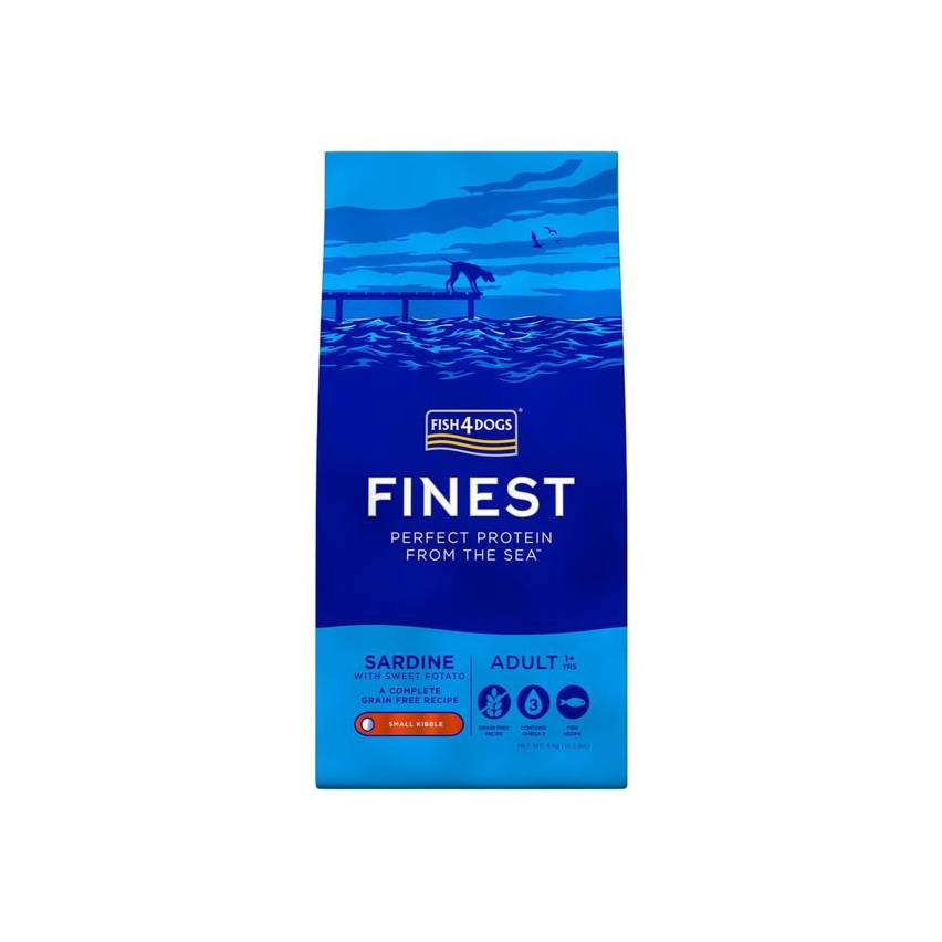 Fish4Dogs Finest Sardine (väiksed graanulid). Teraviljavaba täissööt täiskasvanud koertele sardiiniga. Sardiin on pärit Korni ranniku puhastest ja selgetest vetest. Sobib ka tundliku seedimisega koertele. Kala on suurepärane oomega-3 allikas, see aitab hoida karva läikivana, naha heas seisundis ja liigeste liikuvuse eest hoolt kanda.