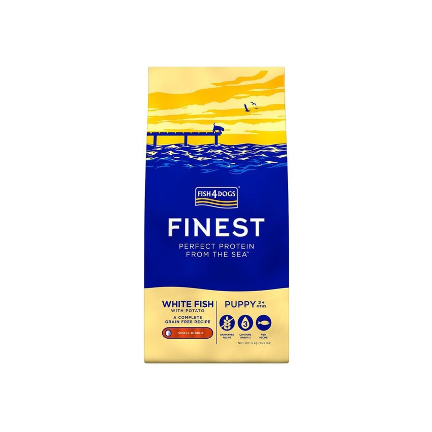 Teraviljavaba täissööt kutsikatele valge ookeanikalaga (väikesed graanulid). Sobib ka tundliku seedimisega koertele. Kala on suurepärane oomega-3 allikas, see aitab hoida karva läikivana, naha heas seisundis ja liigeste liikuvuse eest hoolt kanda.