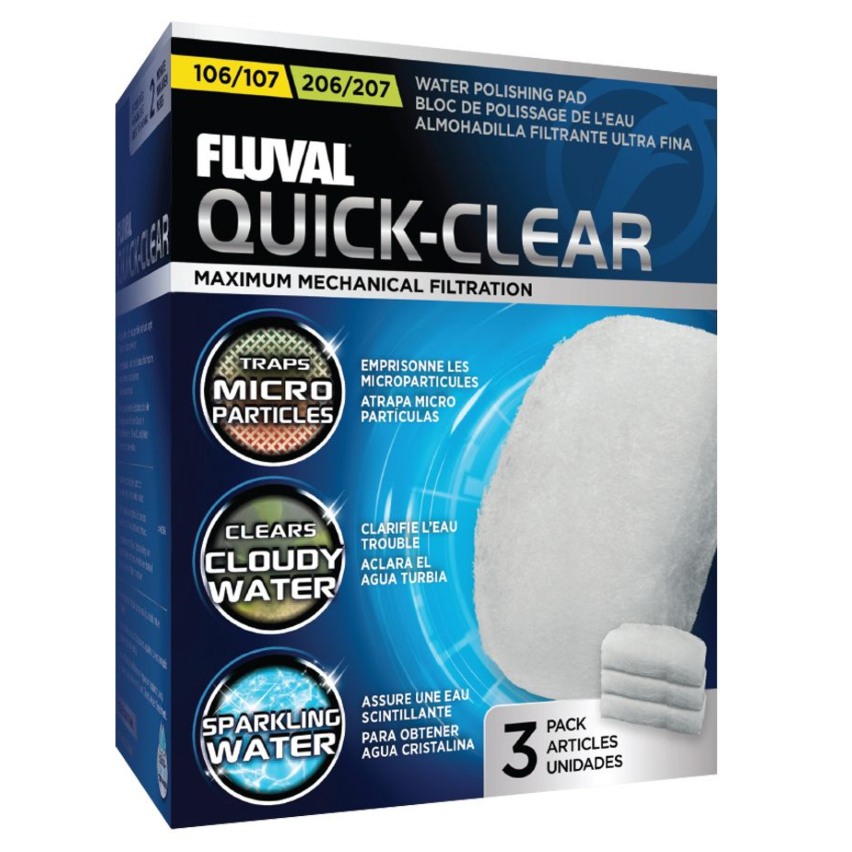 Quick-Clear on mõeldud spetsiaalselt Fluval 107/207 ja 106/206 kanisterfiltrite jaoks. Need paksud, polüestrist veepuhastuspadjad püüavad tõhusalt mikroosakesi ja prahti, jättes teie akvaariumivee kristallselgeks.
