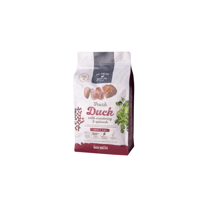 Go Native kassi täissööt pardi, jõhvika ja spinatiga. Täissööt kõikidele kassidele alates 8 nädalat. Iirimaal, värskest ja kohalikust toorainest toodetud kuivtoit. Kõik koostisosad on hoolikalt välja valitud ja testitud kohalikus laboris. Sisaldab tauriini, mis toetab südame tervist ja maksatööd, jõhvikaid, mis toetavad kuseteede tööd, spinatit, mis on hea antioksüdant ja Omega rasvhappeid (3 ja 6), tsinki, mis on head nahale ja karvale.
