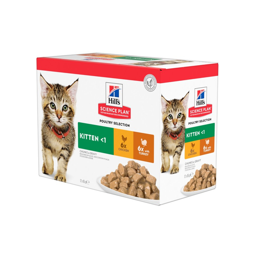 Kassitoit (täissööt) kana – ja kalkunilihaga (34% kanaliha; 4% kalkun) kasvavatele kassipoegadele vanuses 3 nädalat kuni 1. eluaasta ning tiinetele ja imetavatele kassidele. Multipakk. Märgtoit, fileetükid kastmes.