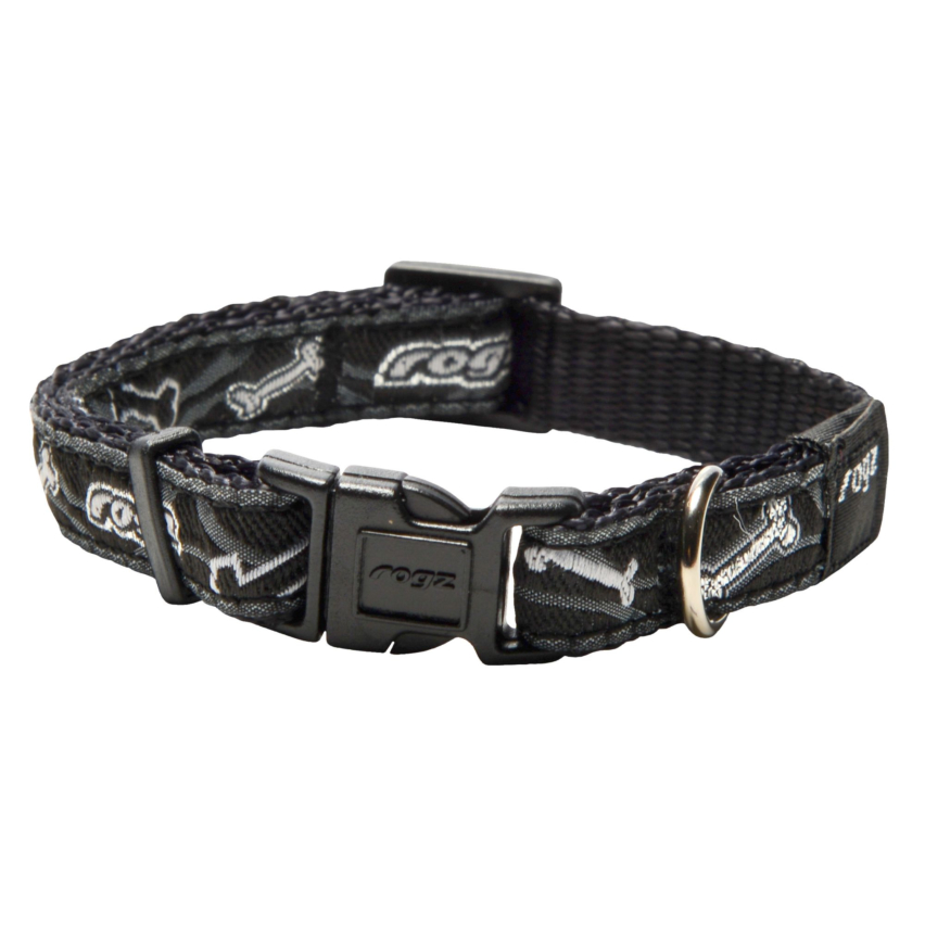 Kaelarihm Rogz Fancy Dress Small 11mm Jellybean, Black Bone muster