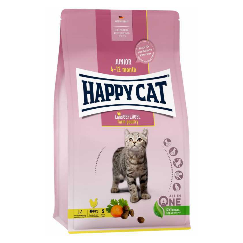 Kui täiskasvanud kassi energiavajadus pärast steriliseerimist väheneb, on steriliseeritud kassipojal jätkuvalt suurenenud energia- ja toitainete vajadus, kuna see kasvab. See on optimaalselt kaetud Happy Cat Junior Land linnulihaga.