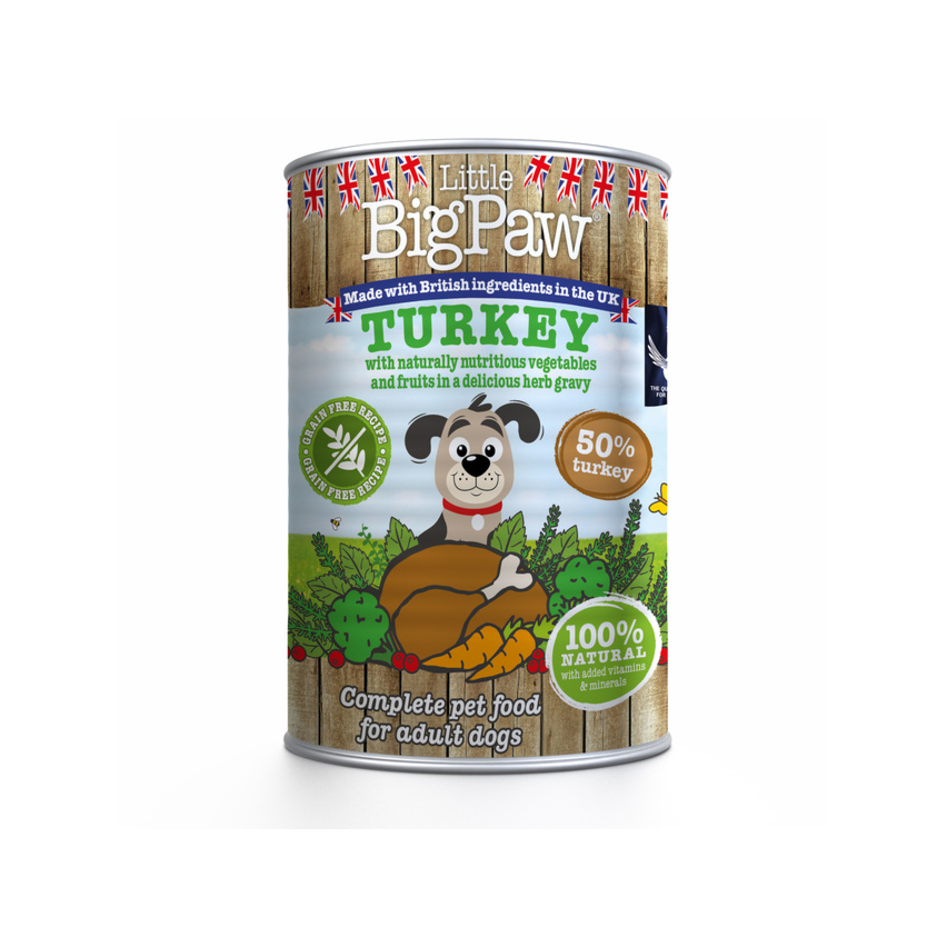 Little Bigpaw täissööt on sobib kõikidele täiskasvanud koeratõugudele. 100% naturaalne ja 50% kalkun. Teraviljavaba ja hüpoallergeenne. Valmistatud värskelt valmistatud maitsvast kalkunist - väga toitev ja kergesti seeditav tailiha. Superfood köögiviljad: Toitvad köögiviljad, sealhulgas brokoli ja porgand. Kerged kõhule, kuid täis kiudaineid. Suurepärased puuviljad: Maitsvad jõhvikad, mis on täis antioksüdante, mis parandavad põie tervist. Toitvad õlid: Pakkuvad naha, liigeste hoolduse ja üliläikiva karvkatte jaoks vajalikke rasvhappeid ja Omega 3. Naturaalsed toidulisandid liigestele: Glükoosamiin ja kondroitiin, et edendada tervislikku kõhre ja hoida liigesed elastsetena ja tugevatena.