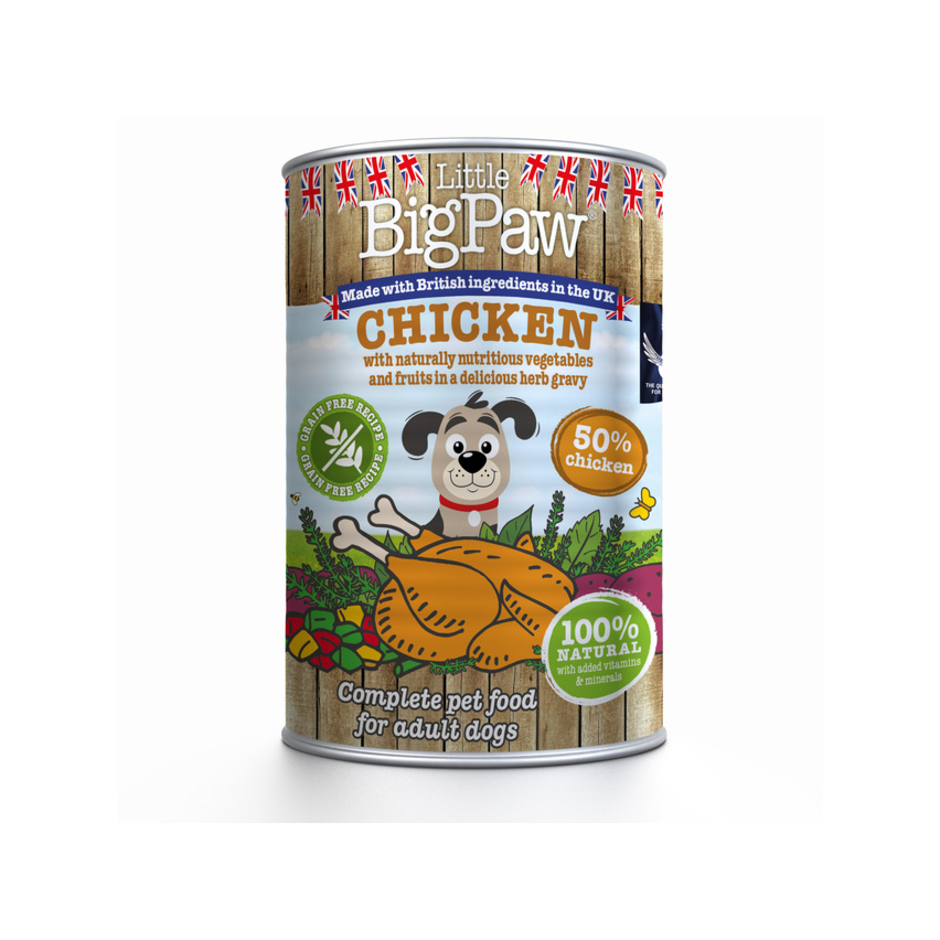 Little Bigpaw täissööt on sobib kõikidele täiskasvanud koeratõugudele. 100% naturaalne ja 50% kana. Teraviljavaba ja hüpoallergeenne. Valmistatud värskelt valmistatud maitsvast kanalihast – väga toitev ja kergesti seeditav tailiha. Superfood köögiviljad: Toitvad köögiviljad, sealhulgas rohelised oad ja paprikad. Kerged kõhule, kuid täis kiudaineid. Naturaalsed süsivesikud: Maguskartul on madala rasvasisaldusega, kuid kõrge toitainesisaldusega, mistõttu on see kergesti seeditav. Toitvad õlid: Pakkuvad naha, liigeste hoolduse ja üliläikiva karvkatte jaoks vajalikke rasvhappeid ja Omega 3. Naturaalsed toidulisandid liigestele: Glükoosamiin ja kondroitiin, et edendada tervislikku kõhre ja hoida liigesed elastsetena ja tugevatena.