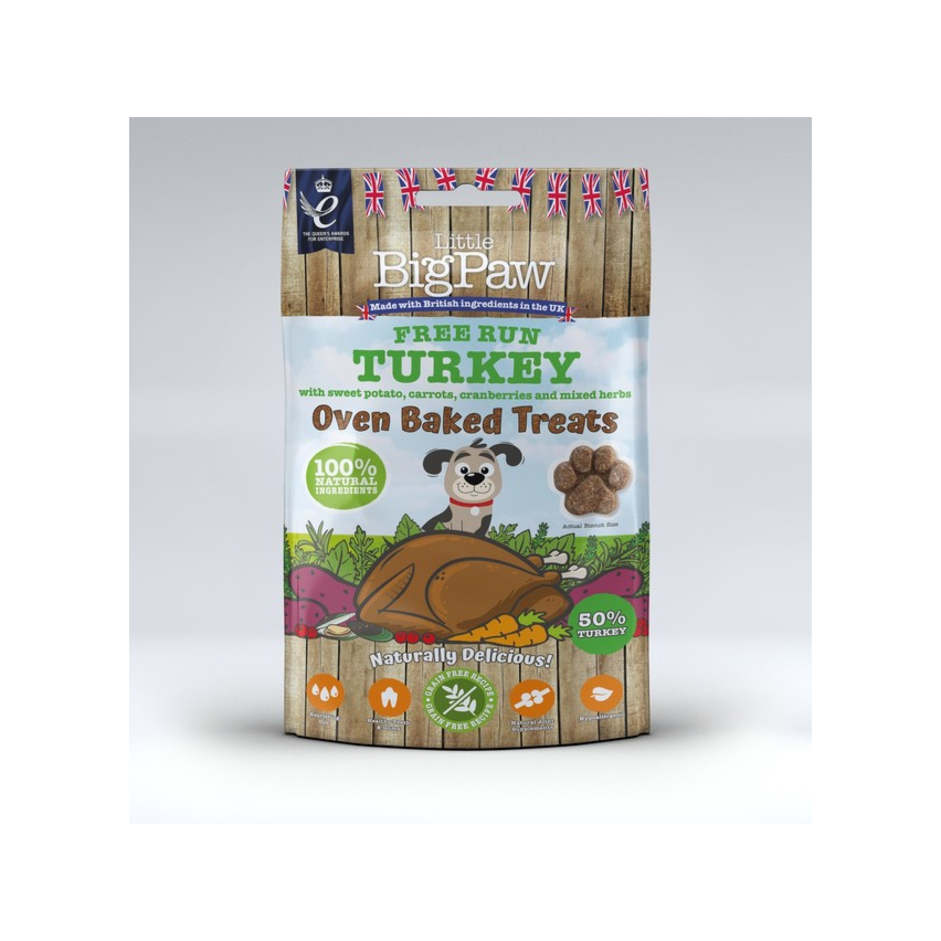 Little Bigpaw koera maius Oven Baked kalkuniga. 100% naturaalne, teraviljavaba ja hüpoallergeenne. Meie krõbedatel maiustel on suurepärane hammaste hooldusfunktsioon ja need aitavad kontrollida hambakivi, samuti aitavad need puhastada teie koera hambaid. 50% kalkunit, mis on kergesti seeditav valguallikas. Superfoods - täis puu- ja köögivilju ning rikastatud tervislike maitsetaimedega. Naturaalsed süsivesikud - maguskartul on madala rasvasisaldusega, kuid kõrge toitainesisaldusega, mistõttu on see kergesti seeditav. Ja kikerherned - täis valku ja kiudaineid, mis aitavad kaasa seedetrakti tervisele. Naturaalselt toitvad maitsetaimed, sealhulgas yucca ekstrakt, mis parandab suurepäraselt naha ja karvkatte seisundit.