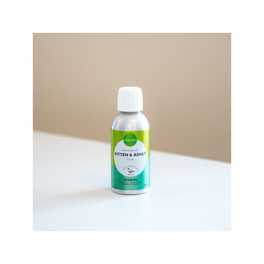 Nutrolin Kitten & Adult õli 150ml on täiendsööt kassipoegadele ja täiskasvanud kassidele. Õli toimaine tagab, et kass saaks kõik eluks vajalikud rasvhapped kätte. Toidab ja kaitseb kassi nahka ning parandab karvkatte kvaliteeti. Aitab kaasa kassipoja tervele kasvule ja aju ning silmade heaolule.