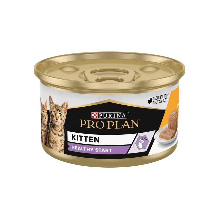 PURINA ® PRO PLAN ® Kitten HEALTHY START pasteet rohke kanaga on hoolikalt valitud koostisosadega täisväärtuslik märgsööt 1-12 kuu vanustele kassipoegadele. Aitab toetada terve nägemise ja aju arengut, luude ja lihaste kasvu ning eluliste funktsiooinde tervislikku arengut. Väga kõrge seeduvusega tänu kõrgkvaliteedilistele koostisosadele.