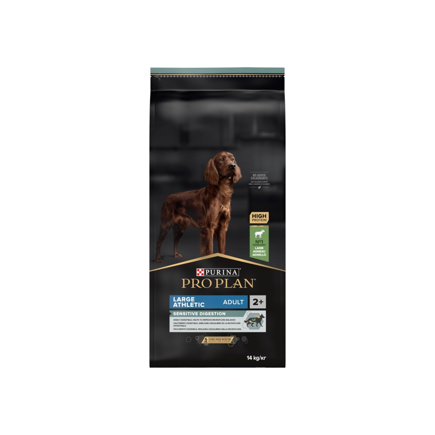 PURINA® PRO PLAN® Large Adult Athletic Dog Sensitive Digestion Rich rohke lambaga. Täiskasvanud tundliku seedimisega suurt kasvu atleetliku kehaehitusega koera rohke lambaga täissööt.