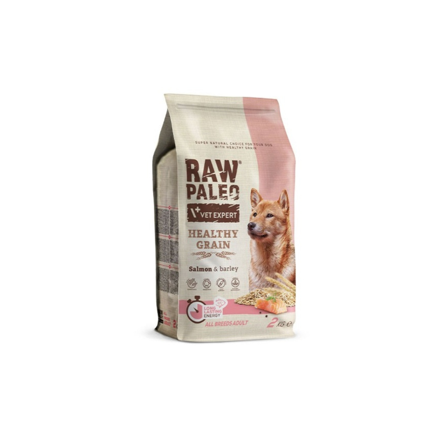 "Raw Paleo Healthy Grain lõheliha ja odraga. Täissööt täiskasvanud koertele. Raw Paleo toit põhineb kõrgekvaliteedilisel kuivatatud lõhelihal, rikastatud kergesti seeditava kalajahuga. Koostis: dehüdreeritud lõheliha 35%, oder 22%, bataat 19%, linnurasv 12%, kalajahu 4%, suhkrupeedi viljaliha 4%, linaseemned, monokaltsiumfosfaat, glükoosamiin (500 mg/kg), õllepärm, mannanoligosahhariidid (MOS – 500 mg/kg), kondroitiinsulfaat (200 mg/kg), fruktooligosahhariidid (FOS – 200 mg/kg), Mojave jukka, roheline tee (0,02%).