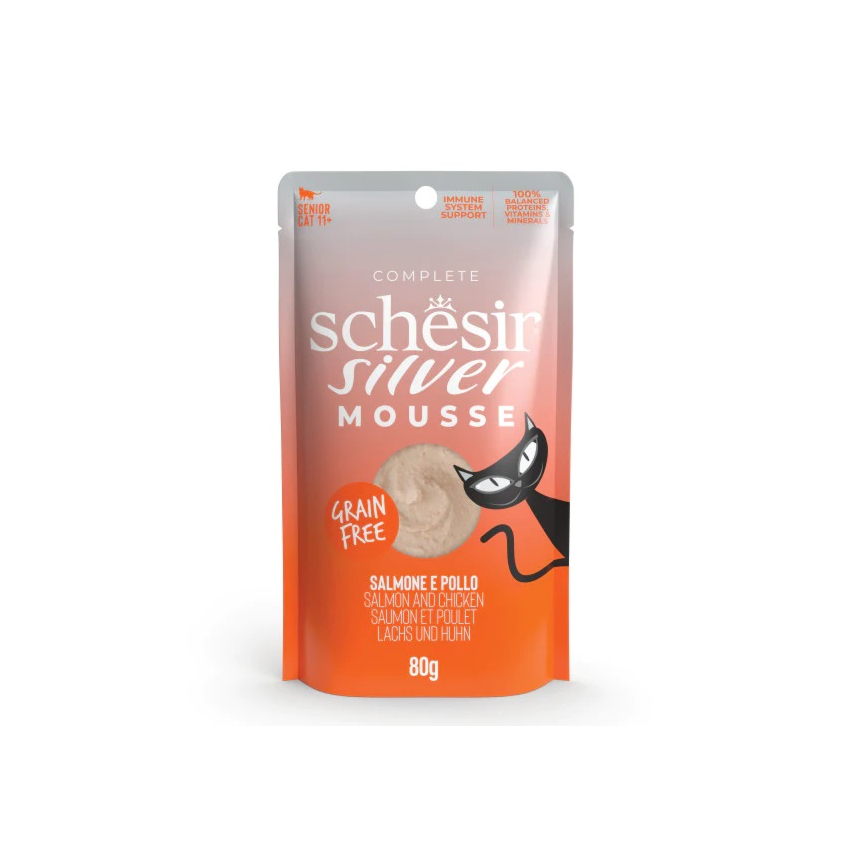 Schesir Silver Cat lõhe + kõrvits vaht eakatele kassidele 80g