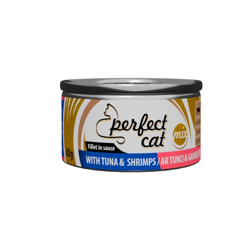 Täissööt (konserv) Perfect Cat tuunikala ja krevettidega kastmes 80g