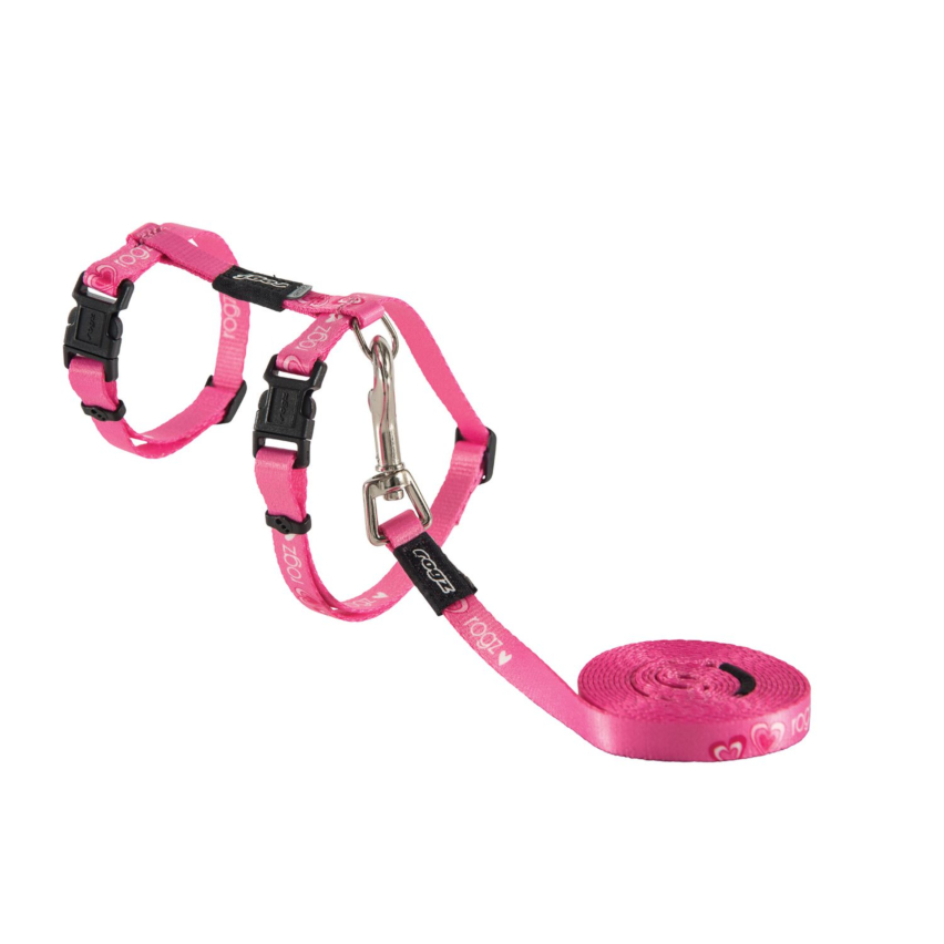 Traksid kassidele rihmaga Kiddycat Pink Hearts 24-40cm/1.8m