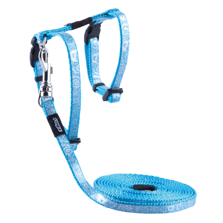 Traksid kassidele rihmaga Rogz Catz SparkleCat 8 mm XSmall, türkiissinine