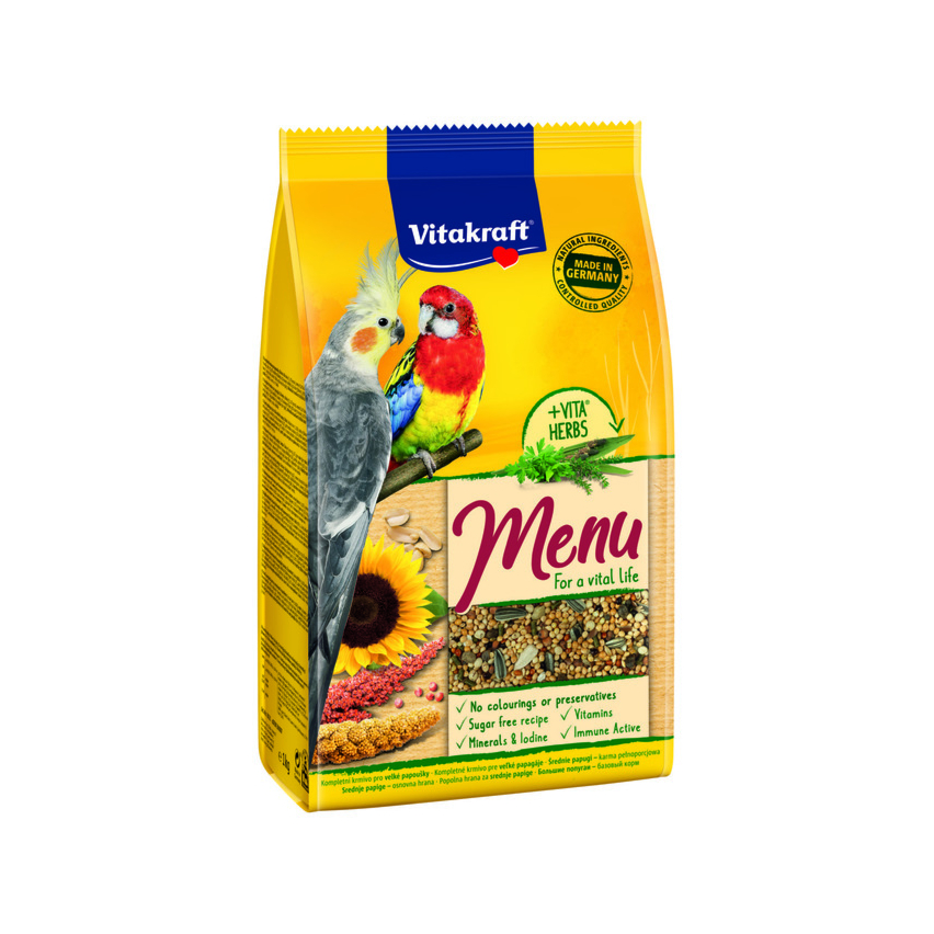 Vitakraft kesk.suurusega papagoide täissööt premium menu 1kg