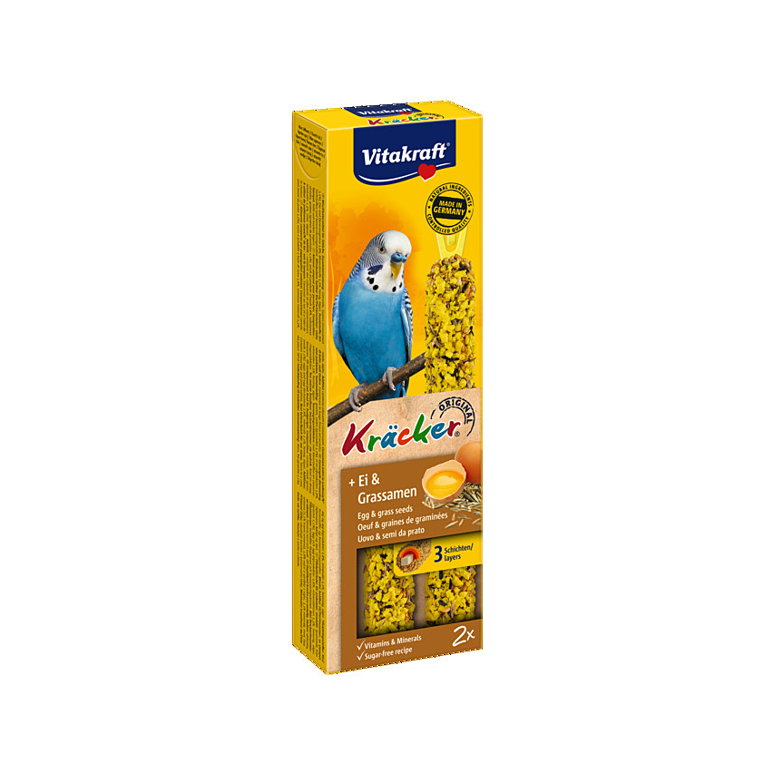 Täiendsööt viirpapagoidele muna ja rohuseemnetega on täiusliku maitsega ja aitab rahuldada liigiomaseid käitumisvajadusi. Naturaalse puitpulga ümber on lisatud kolm küpsetatud krõbedat kihti, mille närimine mõjub soodsalt hammaste kulutamisele ja tervisele.