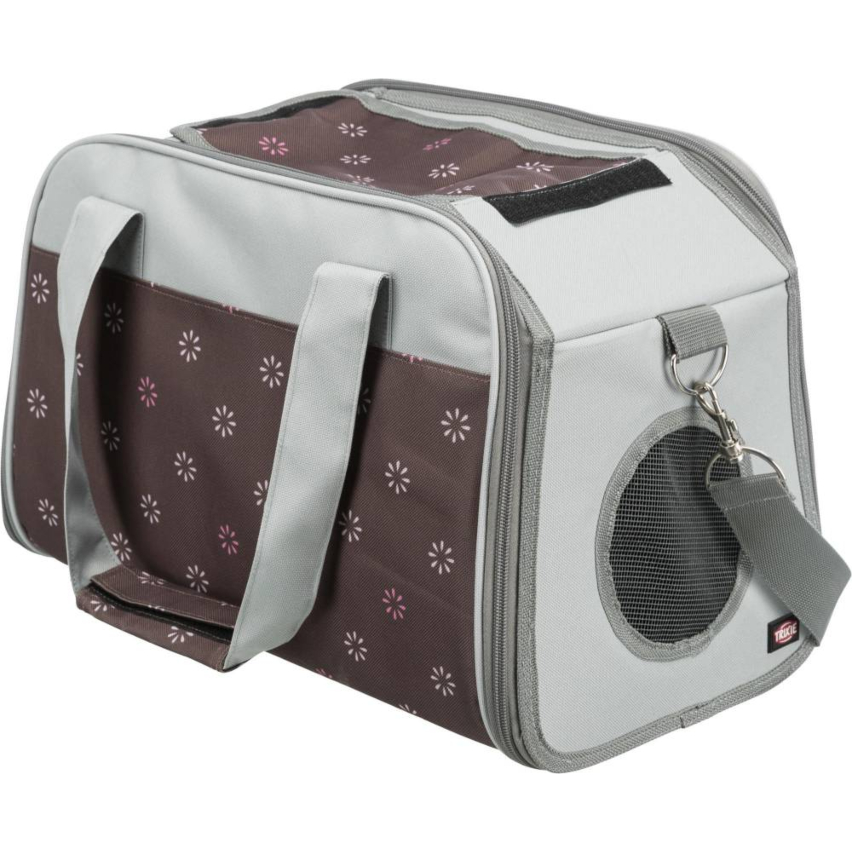 Libby Carrier can be opened at the front and top upper net insert can be covered up with outside pocket padded removable shoulder strap with integrated short leash padded bottom plate, removable polyester colour: brown/grey