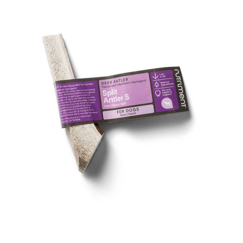"Rauh hirvesarvest valmistatud närimiskott on 100% looduslik ja kvaliteetne koertele mõeldud närimiskont. Täendsööt koertele. Toote suurus S. (30-50 g). Hirvesarved on loomulikult rikkad oluliste mineraalide, näiteks kaltsiumi ja fosfori poolest ning aitavad kaasa heale hammaste tervisele, puhastades hambaid mehaaniliselt iga hammustusega. Need ei sisalda teravilja, värvaineid ega säilitusaineid ning on täiesti lisaainetevabad. Sarv sobib ideaalselt siseruumides kasutamiseks: see on lõhnatu, rasvavaba, ei määri vaipu, ei lõhene ega jää hammaste vahele kinni.