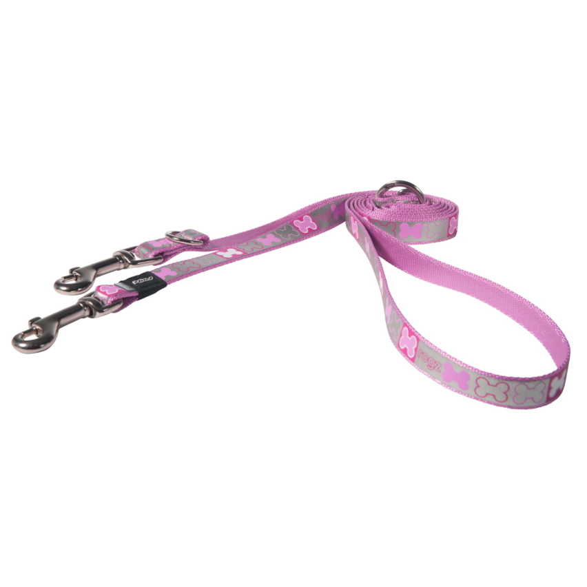 Rogz Pupz Reflecto Medium 16mm Reflective Multi-Purpose Puppy Lead, Pink Bones Design