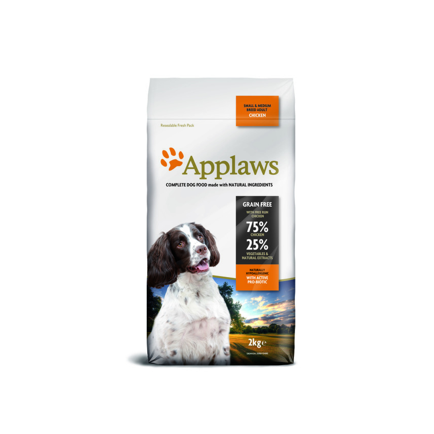 Applaws kuivtoit kanaga väikest ja keskmist kasvu täiskasvanud koertele. Sisaldab 75% kanaliha, juurvilju ja naturaalseid ekstrakte. Applaws kuivtoit on täistoit. Kuna see on väga toitaineterikas sööt, siis see tähendab seda, et söödetavad kogused on väiksemad kui tavalise koeratoidu puhul. Kuivtoit sisaldab probiootikumi, mis tagab kasulike bakterite ülekaalu seedetraktis.