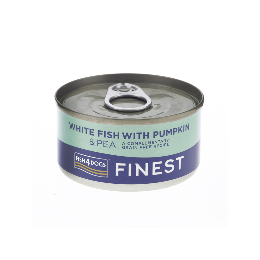 Fish4Dogs® Finest koera kornserv valge kala, kõrvitsa ja hernega 85g.