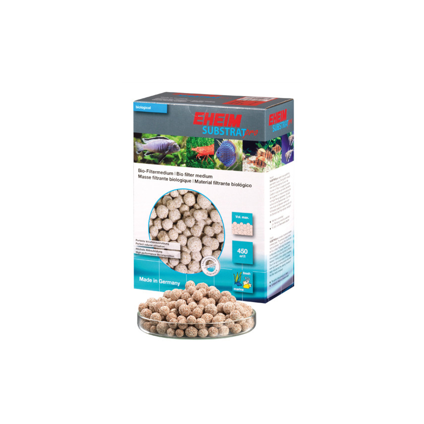 SUBSTRATpro состоит из шариков спечённого стекла. Сферическая форма обеспечивает высокую насыпную плотность. Таким образом весь объём фильтра (корзины или модули) используется максимально эффективно. Кроме того, оптимальная поверхность шариков обеспечивает интенсивное заселение важными очищающими бактериями.