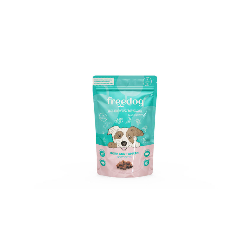 Freedog koeramaius sealihaga ja tomatiga. Täiendsööt koertele. Sealiha on valgu, raua ja B-vitamiinide allikas, samas kui tomat, mis on rikas lükopeeni ja C-vitamiini poolest, toetab südame-veresoonkonna tervist ja tugevdab immuunsüsteemi.
