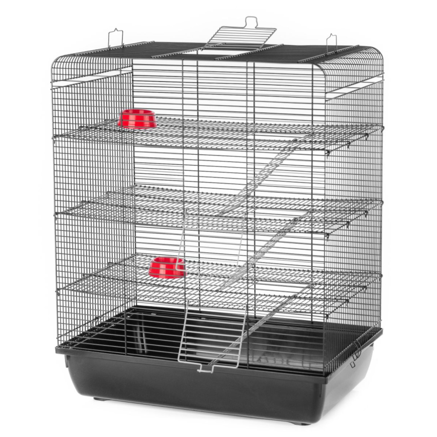 Просторная клетка для грызунов будет служить домом и одновременно местом для развлечений. Такая клетка станет уединенным личным пространством и уютным домиком для маленького грызуна. Размеры клетки: 580 x 380 x 715 мм. Высококачественное покрытие прутьевКрепкое стыковое соединениеЭкологически чистый пластикУдобные двериКомплектация металл: 3 этажа, 3 лесенкиАртикул: .496