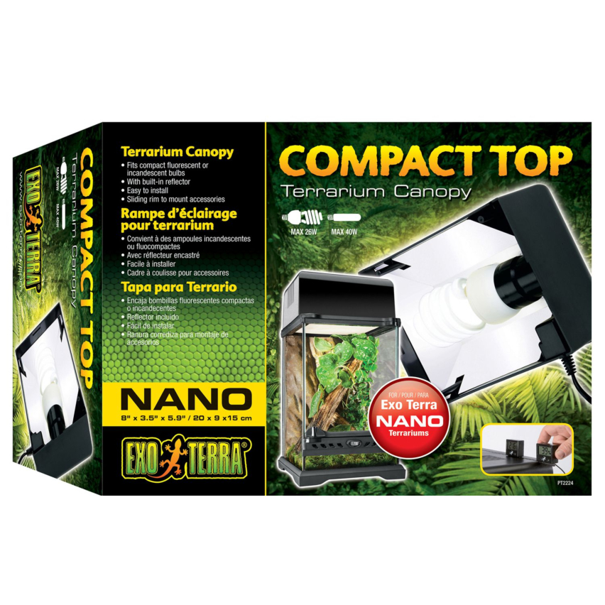 Exo Terra Compact Top - это не просто светильник, это центральный элемент в создании идеальной среды для вашей рептилии или амфибии. Разработанный с высокой точностью, данный светильник идеально подходит к террариумам Exo Terra Natural и Screen Terrarium.