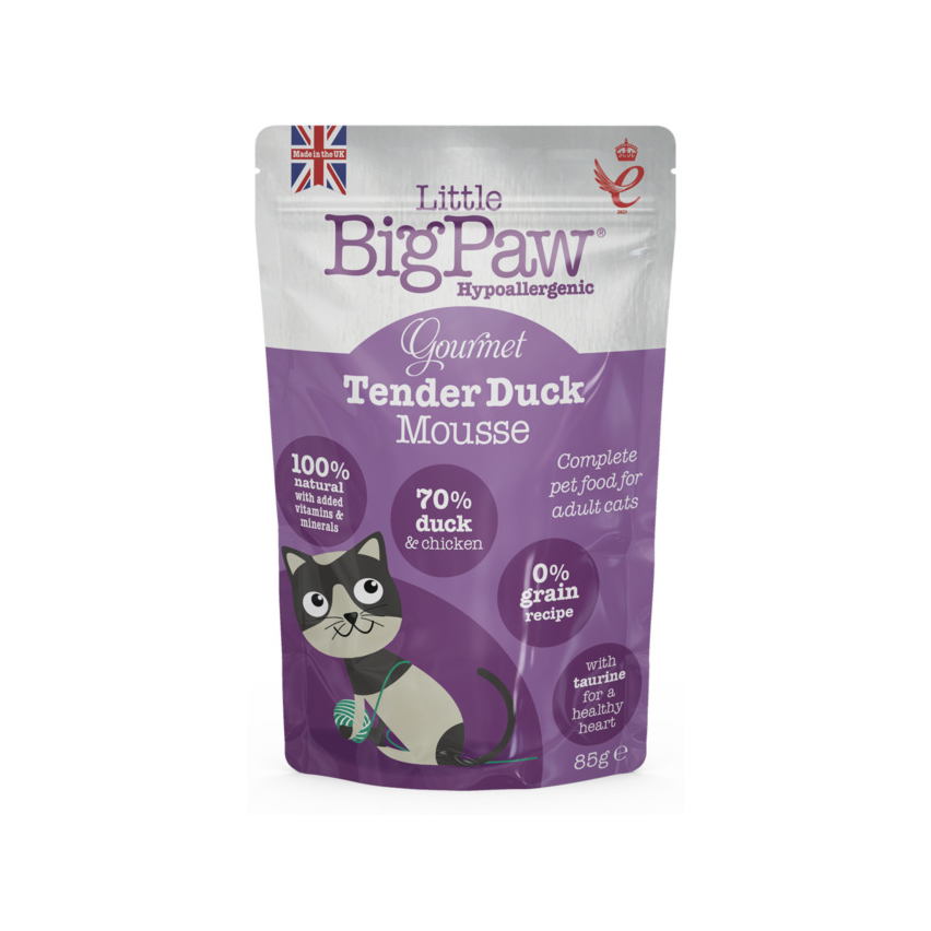 Little Bigpaws kassi pasteet pardiga. Tegemist on täissöödag. 100% naturaalne ning 70% liha. Teraviljavaba ja hüpoallergeenne. Valmistatud pehmest värskest pardilihast – väga toitev, kergesti seeditav ja ülimalt maitsev. Vajalikud vitamiinid ja mineraalid: Sealhulgas A, D ja E, mis tagavad terve immuunsüsteemi ning tugevad hambad ja luud. Oomegaõlid ja -rasvad: Vajalikud rasvhapped suurepärase naha, liigeste hoolduse ja suurepärase läikiva karvkatte jaoks. Tauriin: Oluline terve südame ja hea nägemise jaoks