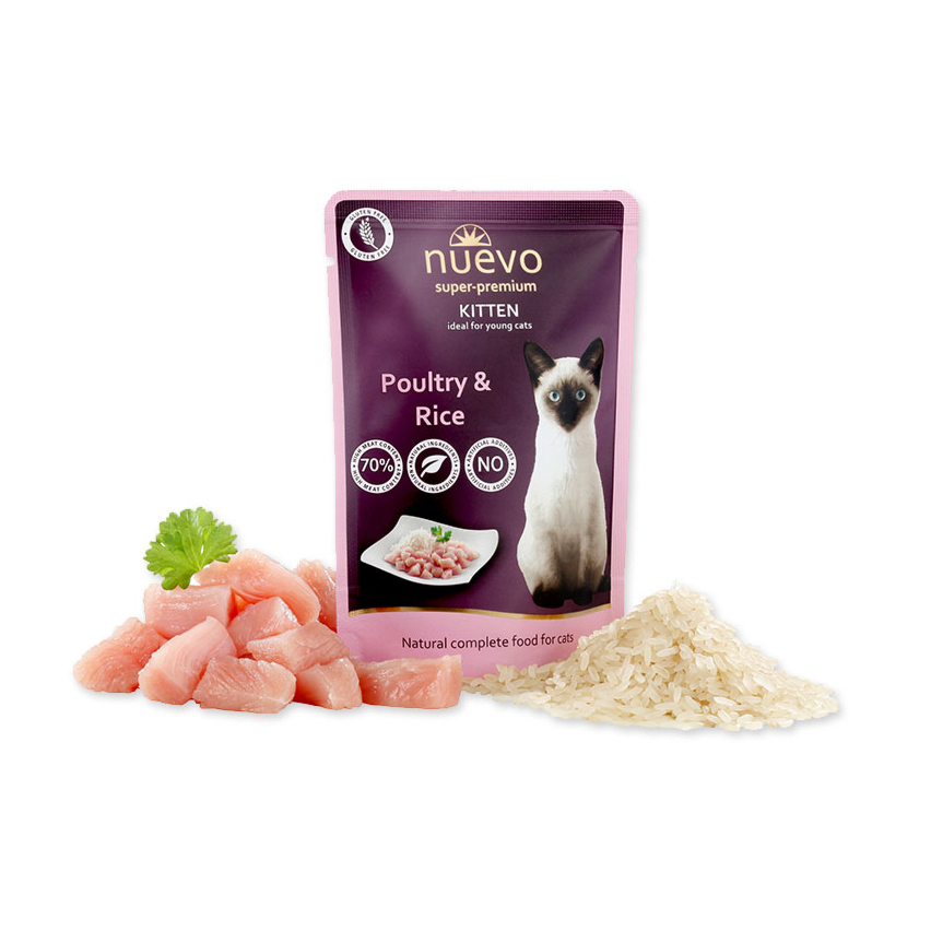 NUEVO KITTEN разработан для обеспечения растущих котят всеми необходимыми питательными веществами. Высококачественное мясо птицы в сочетании с рисом и лососевым маслом обеспечивает вашему котенку полноценное и здоровое начало жизни.