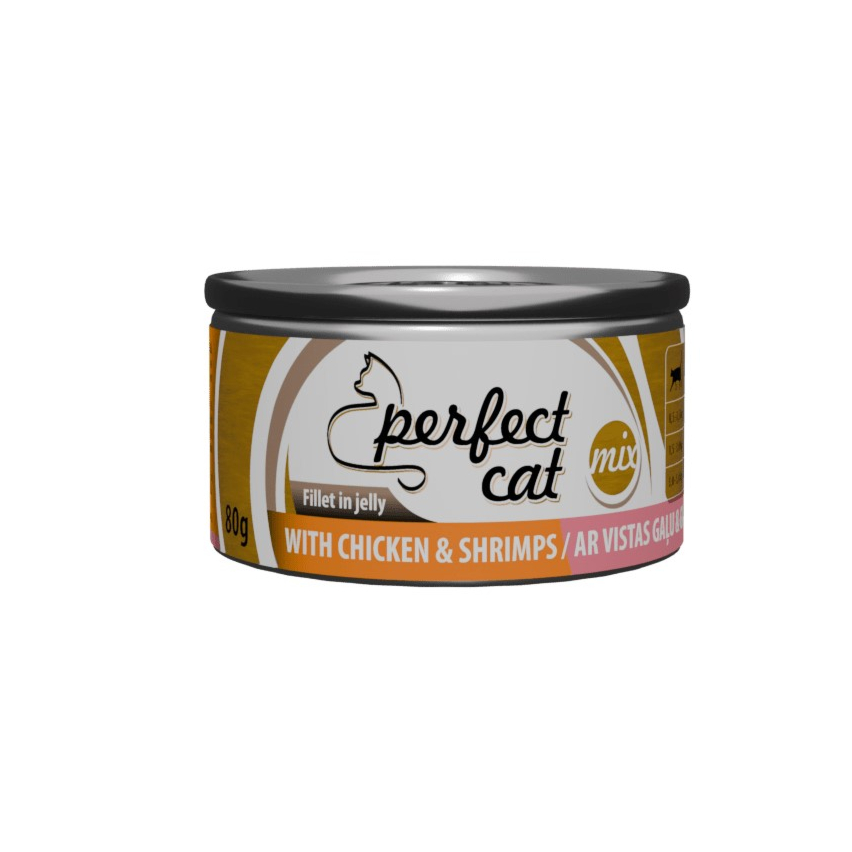 Полноценный (влажный) корм Perfect Cat с курицей и креветками в желе 80 г