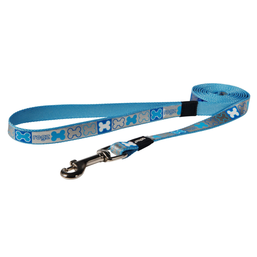Поводок для щенков Rogz Pupz Reflecto Medium 16 мм, узор Blue Bones светоотражающий