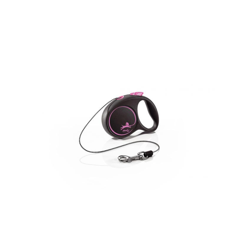 flexi Black Design автоповодок размер XS , Шнур 3 m, для собак до 8 kg, Чёрный/розовый