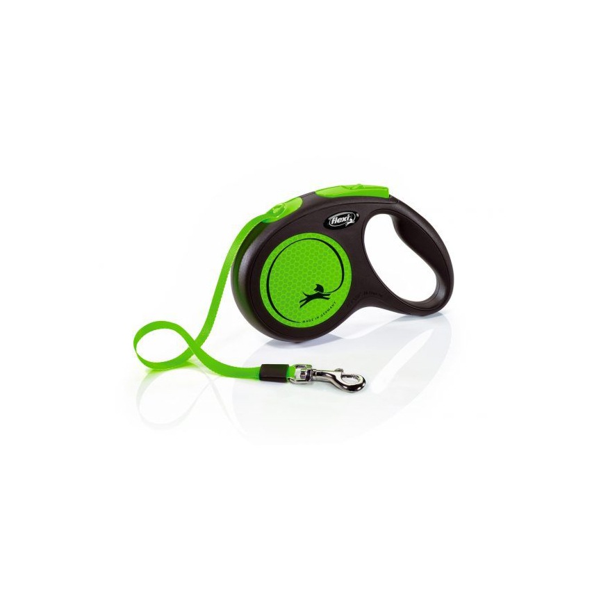 flexi New Neon автоповодок размер M , Лента 5 m, для собак до 25 kg, Чёрный/неоново зелёный