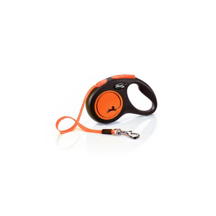 flexi New Neon автоповодок размер S , Лента 5 m, для собак до 15 kg, Чёрный/неоново оранжевый