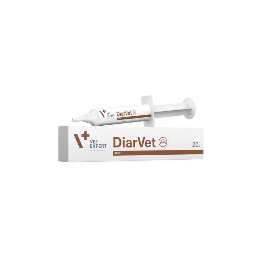 VetExpert DiarVet pasta. Täiendsööt kassidele ja koertele väljaheidete paksendamiseks. Toode on kergesti seeditavate süsivesikute ja prebiootikumide allikas, mis soodustab loomulikku soolestiku mikrobioomi. A-vitamiin toetab sooleepiteeli talitlust. Pastat saab kasutada kõhulahtisuse korral.